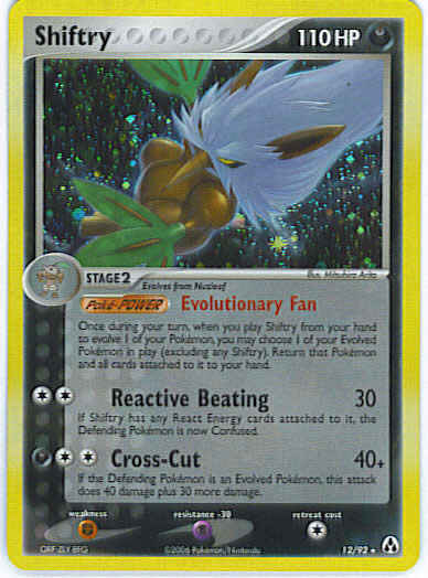 Evne [CC] Reactive Beating (30) If Shiftry has any React Energy cards attached to it, the Defending Pokemon is now Confused.