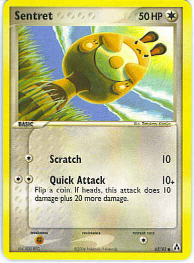| Type | Grass | | Pokemon serie | Legend Maker | | Stadie | Basic | | HP | 50 | | Sjældenhed | Common | | Tilbagetrækning | 1 | | Svaghed | F | | Kortnummer | 62 | | Evne | [C] Scratch (10) [CC] Quick Attack (10+) Flip a coin. If heads, this attack does 10 damage plus 20 more damage. | | Evne2 | [C] Scratch (10) [CC] Quick Attack (10+) Flip a coin. If heads, this attack does 10 damage plus 20 more damage. | | Kunstner | Tomokazu Komiya |