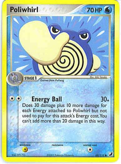Evne2[CC] Energy Ball (30+) Does 30 damage plus 10 more damage for each Energy attached to Poliwhirl but not used to pay for this attack's Energy cost. You can't add more than 20 damage in this way.