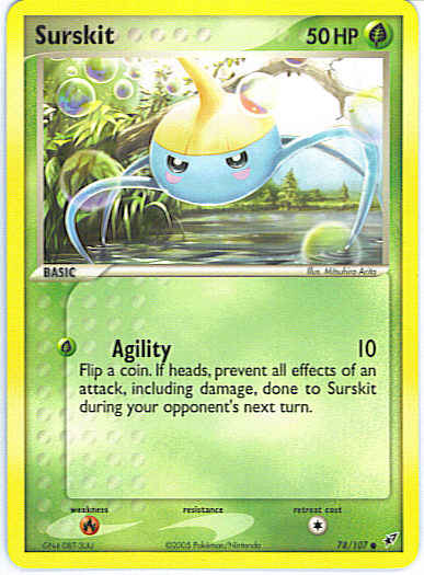 Evne[G] Agility (10) Flip a coin. If heads, prevent all effects of an attack, including damage, done to Surskit during your opponent's next turn.