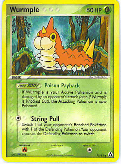 | Type | Grass | | Pokemon serie | Legend Maker | | Stadie | Basic | | HP | 50 | | Sjældenhed | Common | | Tilbagetrækning | 1 | | Svaghed | R | | Kortnummer | 70 | | Evne | [C] String Pull - Switch 1 of your opponent's Benched Pokemon with 1 of the Defending Pokemon. Your opponent chooses the Defending Pokemon to switch. | | Evne2 | [C] String Pull - Switch 1 of your opponent's Benched Pokemon with 1 of the Defending Pokemon. Your opponent chooses the Defending Pokemon to switch. | | Kunstner | Yukiko Baba |
