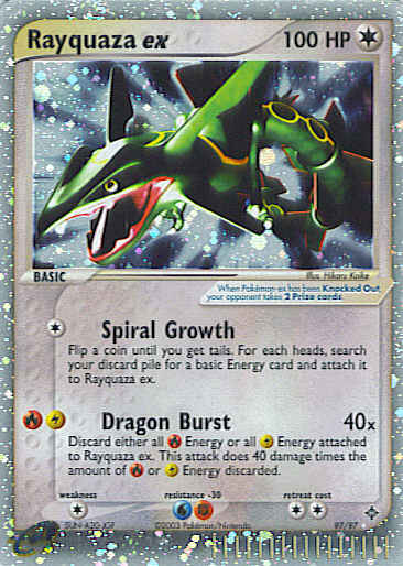 Evne[C] Spiral Growth - Flip a coin until you get tails. For each heads, search your discard pile for a basic Energy card and attach it to Rayquaza ex.
