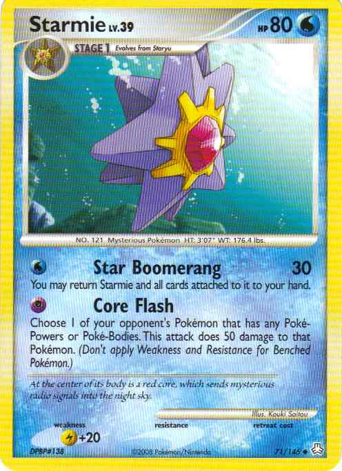 Evne[W] Star Boomerang (30) You may return Starmie and all cards attached to it to your hand.