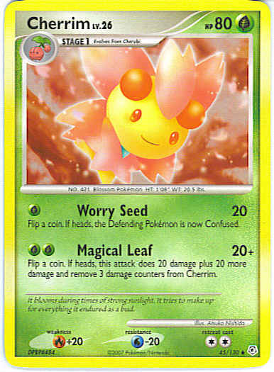 [GG] Magical Leaf (20+) Flip a coin. If heads, this attack does 20 damage plus 20 more damage and remove 3 damage counters from Cherrim.