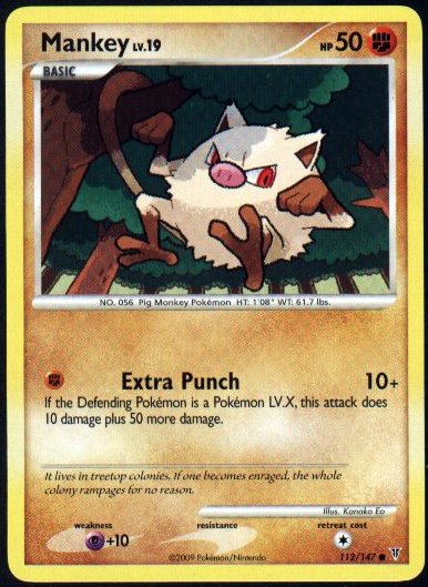 Evne [F] Extra Punch (10+) If the Defending Pokemon is a Pokemon LV.X, this attack does 10 damage plus 50 more damage.