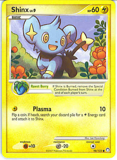 [L] Plasma (10) Flip a coin. If heads, search your discard pile for a L Energy card and attach it to Shinx.