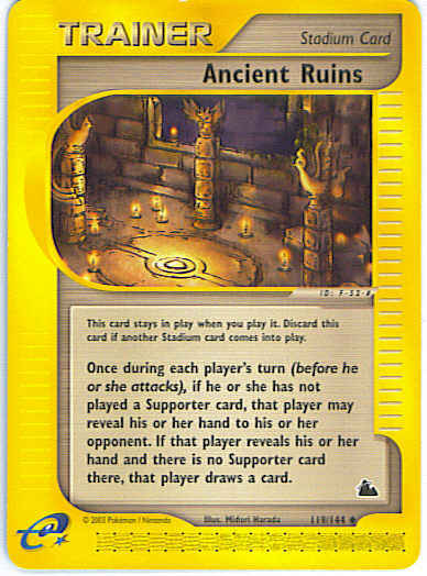 Evne2Once during each player's turn (before he or she attacks), if he or she has not played a Supporter card, that player may reveal his or her hand to his or her opponent. If that player reveals his or her hand and there is no Supporter card there, that player draws a card.