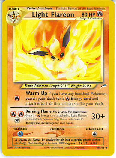 [CRR] Burning Flame (30+) Flip 2 coins. For each heads, discard a R Energy card attached to Light Flareon or this attack does nothing. This attack does 30 damage plus 20 damage for each heads.