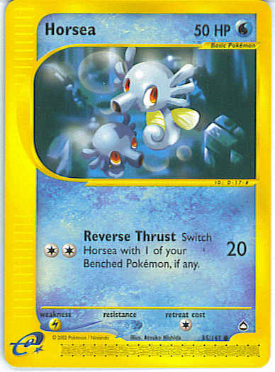 Evne[CC] Reverse Thrust (20) If you have any Benched Pokemon, choose 1 of them and switch it with Horsea.