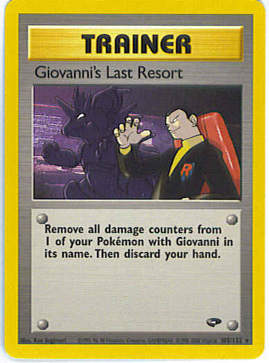 Evne Remove all damage counters from 1 of your Pokemon with Giovanni in its name. Then discard your hand.