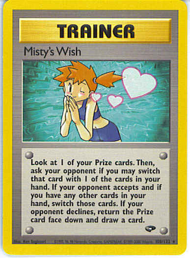 Evne Look at 1 of your Prize cards. Then, ask your opponent if you may switch that card with 1 of the cards in your hand. If your opponent accepts and if you have any other cards in your hand, switch those cards. If your opponent declines, return the Prize card face down and draw a card.