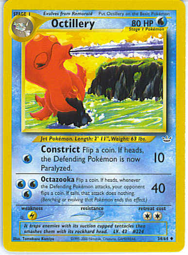 [WWW] Octazooka (40) Flip a coin. If heads, whenever the Defending Pokemon attacks, your opponent flips a coin. If tails that attack does nothing. (Benching or evolving that Pokemon ends this effect.)