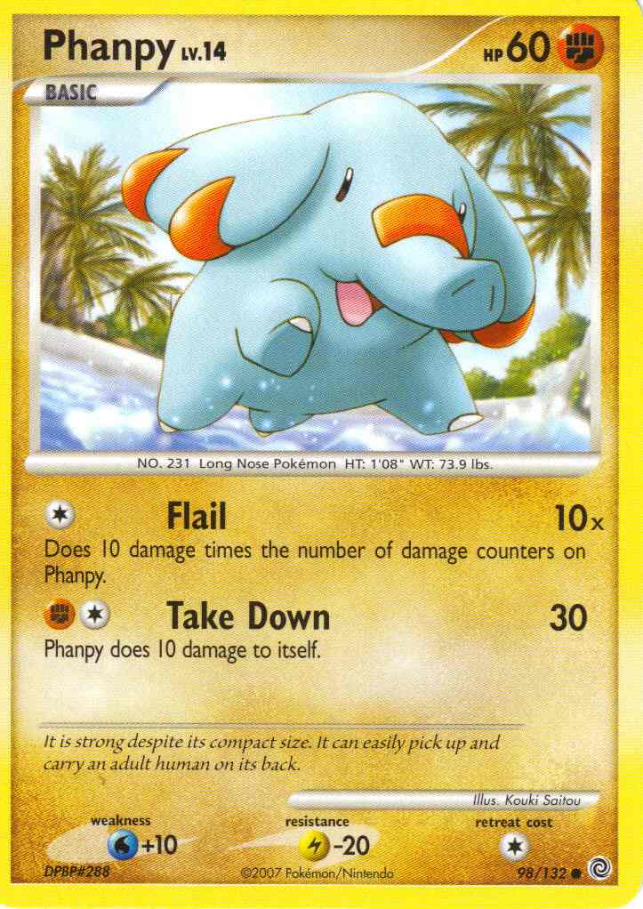 Evne [C] Flail (10x) Does 10 damage times the number of damage counters on Phanpy.
