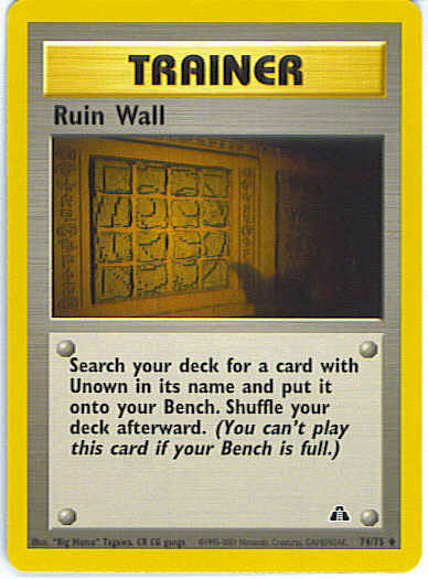Evne Search your deck for a card with Unown in its name and put it onto your Bench. Shuffle your deck afterward. (You can't play this card if your Bench is full.)