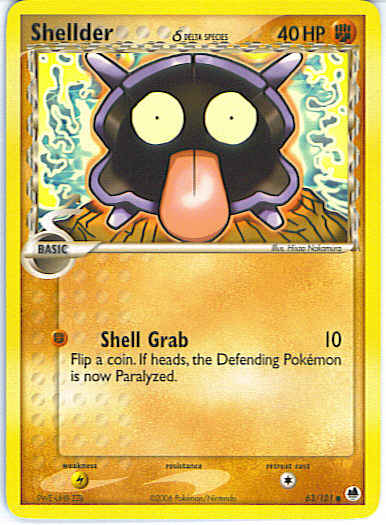 Evne2[F] Shell Grab (10) Flip a coin. If heads, the Defending Pokemon is now Paralyzed.