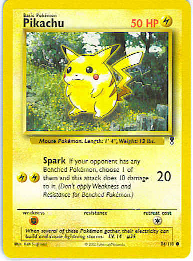 | Type | Lightning | | Pokemon serie | Legendary Collection | | Stadie | Basic | | HP | 50 | | Sjældenhed | Common | | Tilbagetrækning | 1 | | Svaghed | F | | Kortnummer | 86 | | Evne |