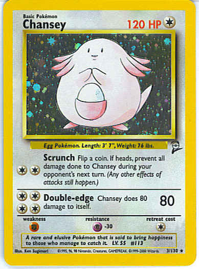 [CC] Scrunch - Flip a coin. If heads, prevent all damage done to Chansey during your opponent's next turn. (Any other effects of attacks still happen.)