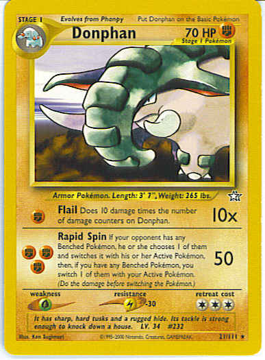 Evne [F] Flail (10x) Does 10 damage times the number of damage counters on Donphan.