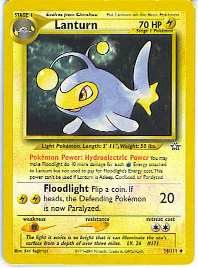 Evne2 [LL] Floodlight (20) Flip a coin. If heads, the Defending Pokemon is now Paralyzed.