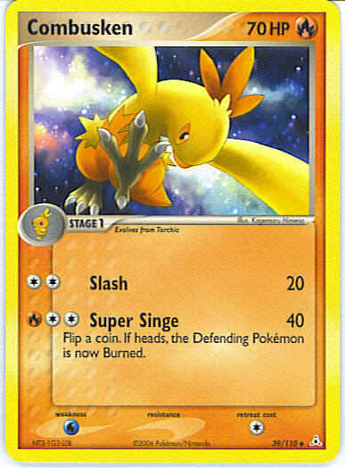 | Type | Fire | | Pokemon serie | Holon Phantoms | | Stadie | Stage 1 | | HP | 70 | | Sjældenhed | Uncommon | | Tilbagetrækning | 1 | | Svaghed | W | | Kortnummer | 39 | | Evne | [CC] Slash (20) [CCR] Super Singe (40) The Defending Pokemon is now Burned. | | Evne2 | [CC] Slash (20) [CCR] Super Singe (40) The Defending Pokemon is now Burned. | | Kunstner | Emi Miwa |